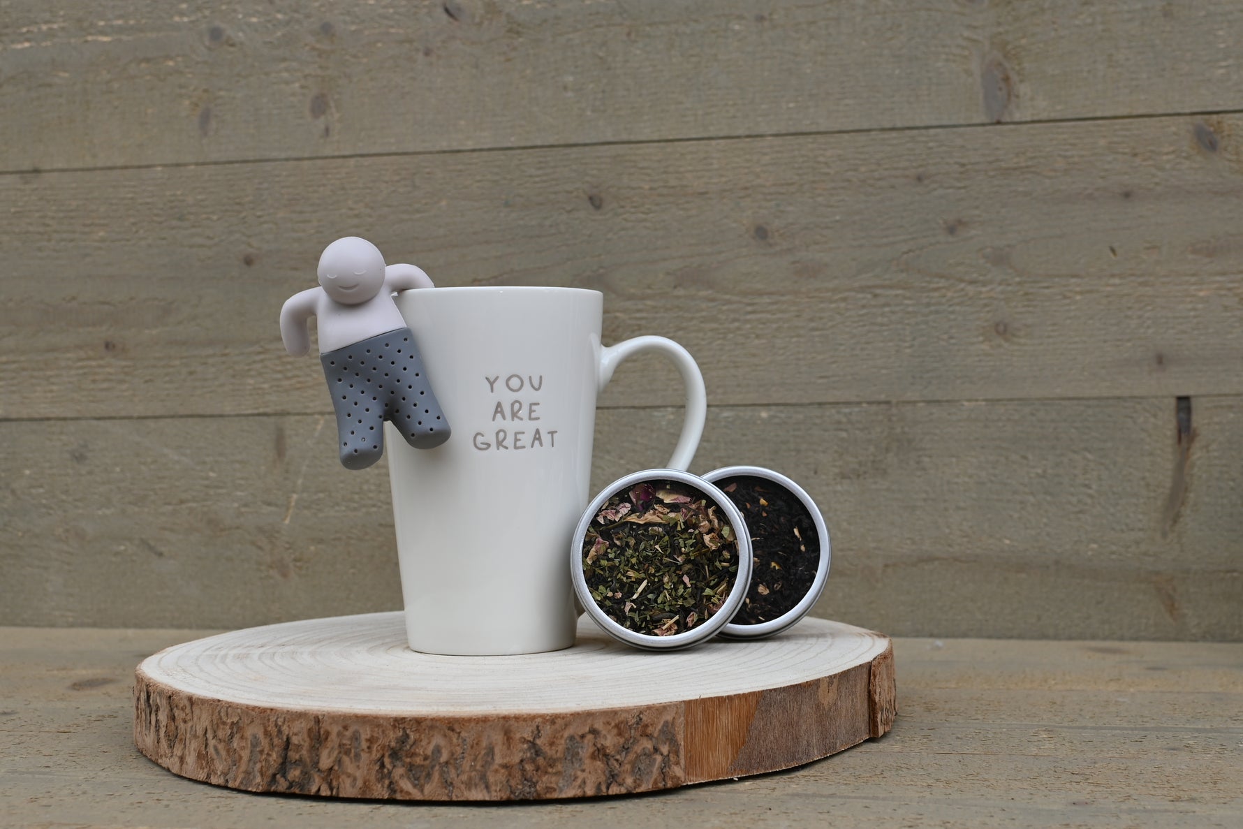 Met dit leuke cadeaupakket is het echt een feetje om thee te drinken. Het cadeaupakket heeft alles wat je nodig hebt. Een leuke beker (450ml), twee bewaardoosjes losse thee en een theezeef.